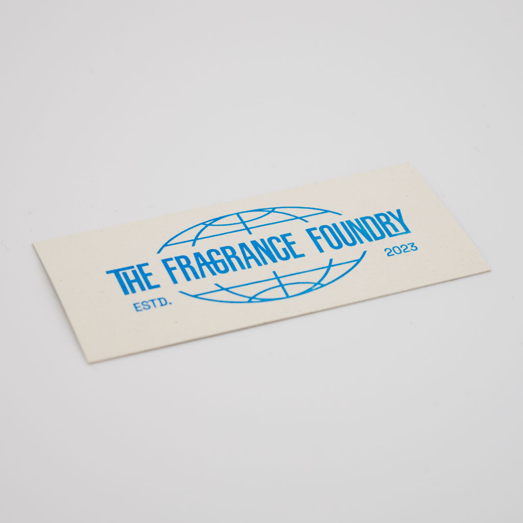 Ogni ordine spedito dalla nostra sede centrale nel Regno Unito include una carta da collezione The Fragrance Foundry. Queste carte sono numerate individualmente e stampate in tirature limitate, con ogni nuova tiratura che utilizza un inchiostro Pantone unico (colore puro). In questo modo, potete far parte del nostro viaggio e portare con voi un pezzo della nostra storia. Per la nostra primissima tiratura di 500 copie (ottobre 2023), abbiamo scelto il blu neon.