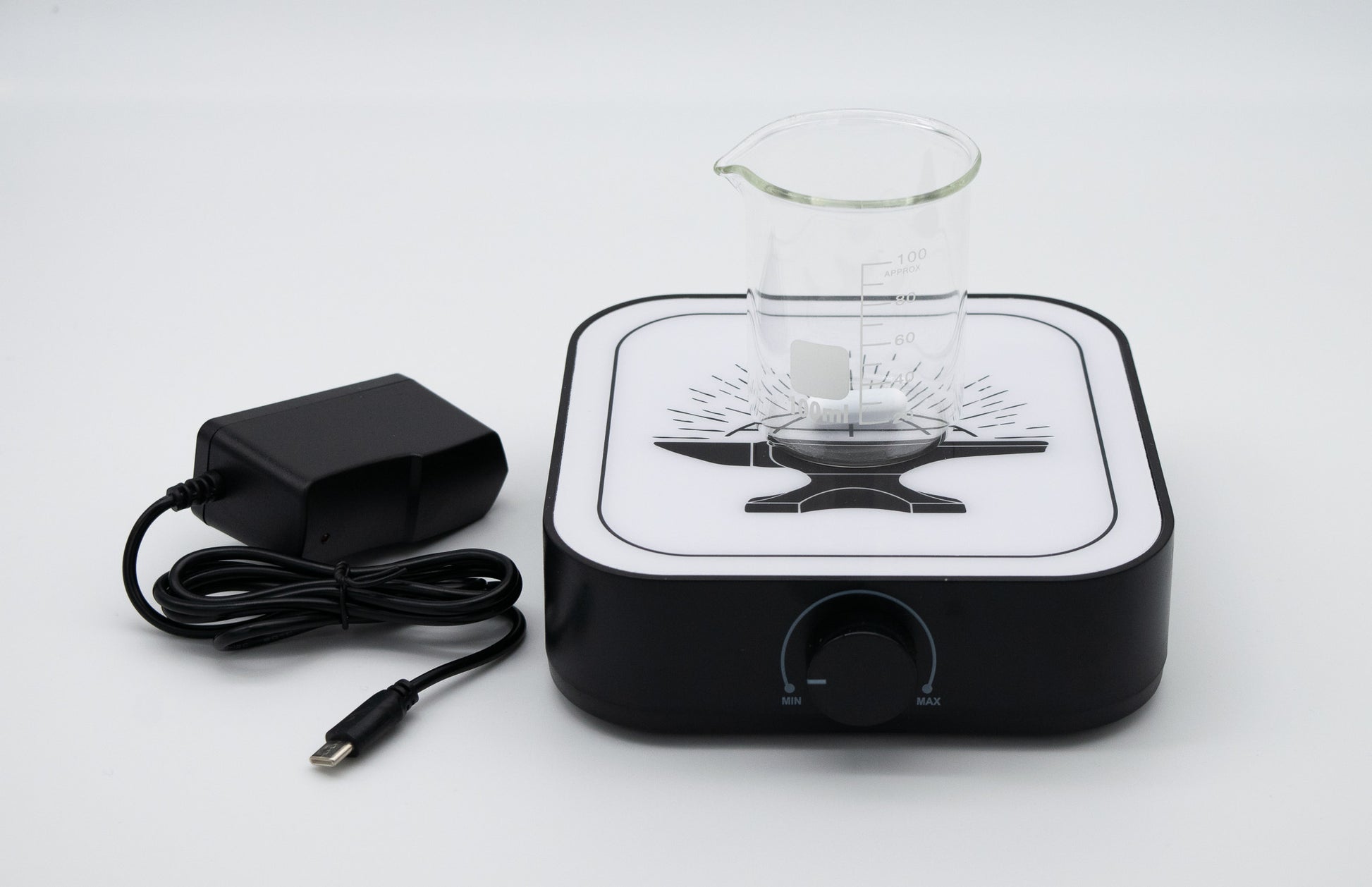 Includes magnetic stirrer bar and plug socket (select above). Beaker sold separately.